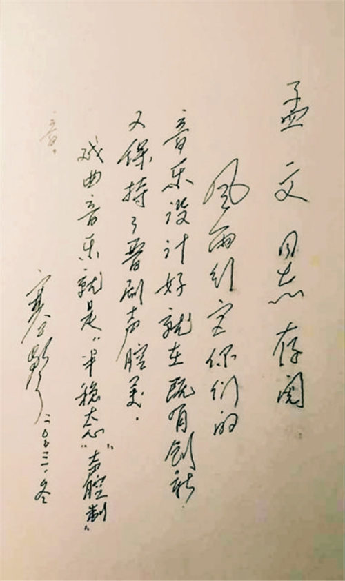 不一会儿,蒙文主要创作并完成了金歌剧《暴风雨宫殿》的音乐创作。该剧由董美珍主演,先后由山西程玉英金剧团、太原实验金剧院等同名剧团推广演出。它受到了观众的广泛赞扬,也受到了专家的赞扬。2003年冬天,86岁的山西文化圈老领导和“人民艺术家”韩胜在观看演出后给蒙文写道:“暴风雨宫殿”的音乐设计既有创新性,又保持了晋剧的音色之美。歌剧音乐是“半稳定”和“音调系统”。"