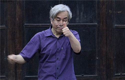 刘和跃与琴师郑海珍在一起修改乐队切入