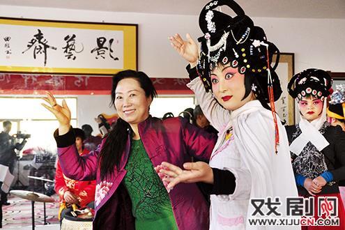 黄凤兰老师(左)教农村艺术爱好者艺术。