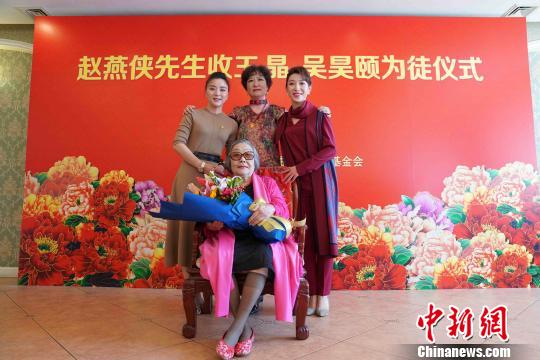 中新网9月18日电(记者潘徐琳)90岁的著名京剧艺术家赵燕侠18日在北京欢迎王静和吴昊颐成为弟子,并在京剧艺术基金会的赞助下举行了隆重的教师崇拜仪式。