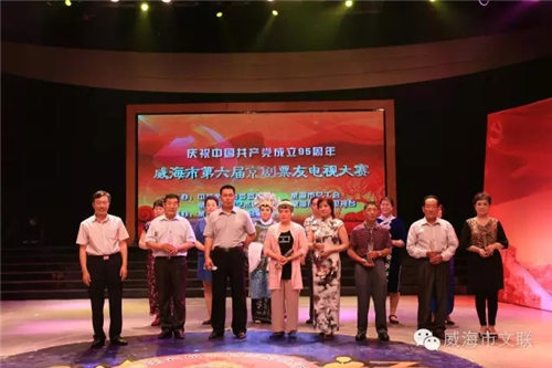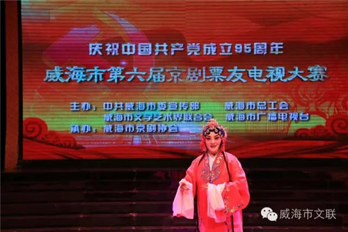 为了庆祝中国共产党成立95周年,进一步弘扬民族文化,激发广大群众和业余戏曲爱好者学习戏曲的积极性,繁荣和发展我市京剧艺术,丰富城乡人民的文化生活, 6月23日下午,由中共威海市委宣传部、威海市总工会、威海市文学艺术界联合会、威海广播电视台联合主办、威海市京剧业余协会主办的“威海市第六届京剧业余电视比赛”决赛在威海电视台广播大厅举行。 中共威海市委宣传部副部长、社会科学技术协会主席刘昌毅、威海市文联主席、市委书记安莉、威海市广播电视台台长王建平观看了演出。