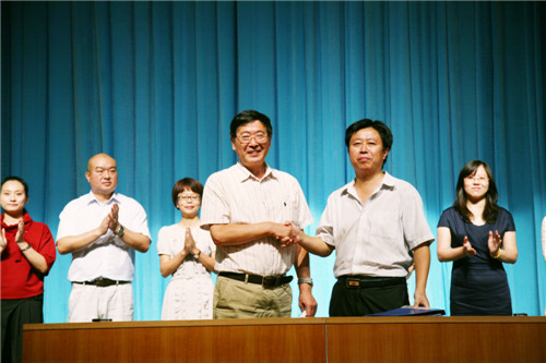 杨化玉书记与海阳市京剧团团长李东晓共同签署了结对帮扶协议。