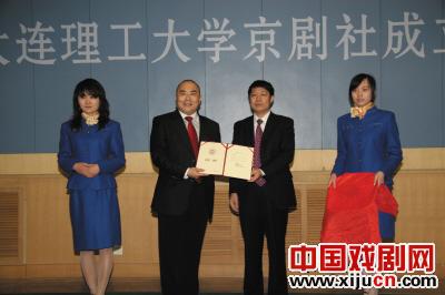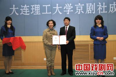 大连京剧院院长杨赤(左二)担任了大连理工大学京剧社荣誉社长。大连歌剧院院长