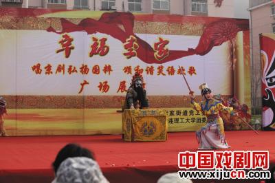 京剧社同学安百强、孔庆晔演出《武家坡》。京剧团的
