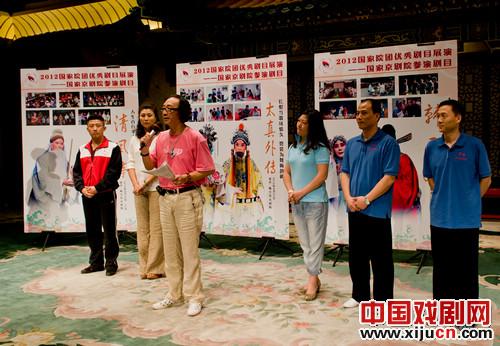 8月14日下午,国家京剧剧院在昌河源剧院举行了关于该剧院“2012年国家艺术学院优秀演出”的盛大新闻发布会。文化部艺术司副司长张凯华、宋冠林总裁、尹晓东副总裁、俞奎志副总裁兼艺术总监、刘长瑜艺术总监兼艺术总监委员会主任、张春华、高慕坤、李学忠、宋风、常桂香、叶君、刘海生等老艺术家、李海燕、张建国等剧团的领导以及参加展览和演出活动的演员和工作人员出席了会议。来自国家京剧剧院的40名官方微博粉丝也参加了此次活动。国家京剧剧院新浪官方微博也同时进行了新闻发布。