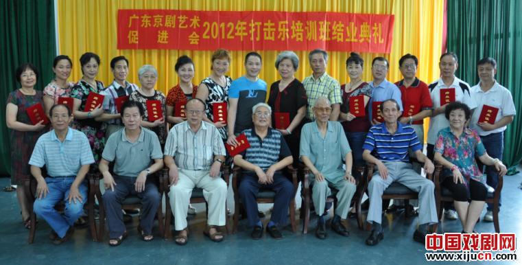 为了培养广东京剧票号打击乐的新力量,提高京剧打击乐的演奏水平,促进京剧艺术的发展,广东京剧艺术促进会组织的打击乐培训班在打击乐专家何蔡赟的指导下,经过三个月的学习,于2012年7月22日圆满结束。广东省京剧艺术促进会会长、原广东省人大副主任王骏、广东省京剧艺术促进会副会长、原广州军区司令员颖、广东省京剧艺术促进会副会长、原广东省文化厅副厅长、著名剧作家陈钟秋担任监考兼审稿人。他还授予15名通过打击乐器培训证书考试的学员和三名获得证书的优秀学员。本次毕业考试由广东京剧艺术促进会办公室主任阎郭昶主持。