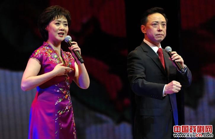 余奎芝(右)和李胜素表演京剧《四郎拜见母亲》的节选。