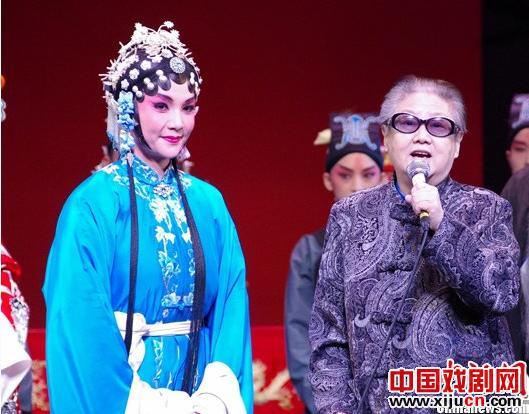 演出结束后,剧团的年轻演员王耀星(左)正式向著名京剧表演艺术家、承袭学派的李士奇(右)做了自我介绍。
