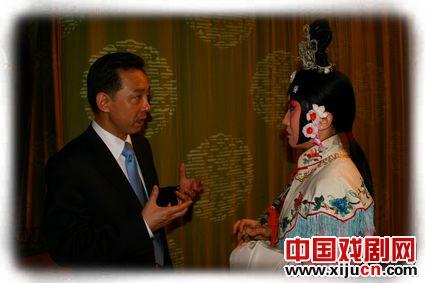 演出前,副总裁余奎志与年轻演员潘跃觉进行了交谈。