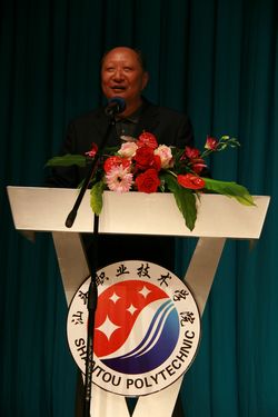 第一团书记迟崇安和汕头职业技术学院院长唐交换了礼物。