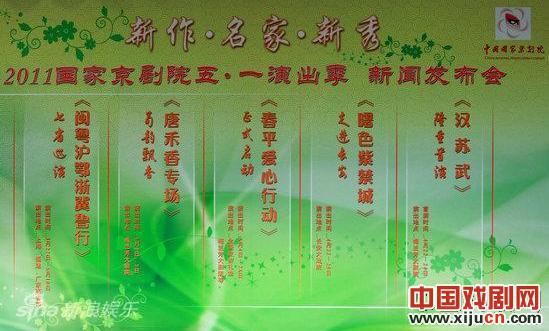 国家京剧剧院2011年“五一表演季”将于4月22日至5月24日在全国许多城市举行。这个表演季节改变了“拼盘”的旧面貌。慈善家李春平在3月22日的北京演出季开幕式上也宣布,他将在有生之年每年为国家京剧剧院的“五一演出季”捐款200万元。