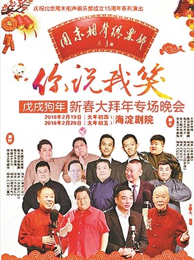 海淀剧院改变了以往表演马华滑稽作品的常规,推出了中国著名新年演员的“你说我笑”和“百日狗”特别表演,汇集了李金斗、李建华、李增瑞等著名相声演员。德运会和嘻哈行李商店等相声团体将带来60多场表演,带领观众度过一个快乐的新年。朝阳公园将推出“2018年新年版朝阳公园马戏团”。狮虎、黑熊、孙悟空和小狗将轮流展示他们独特的技能。