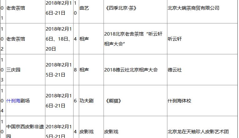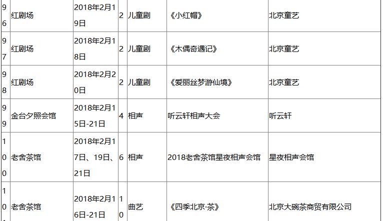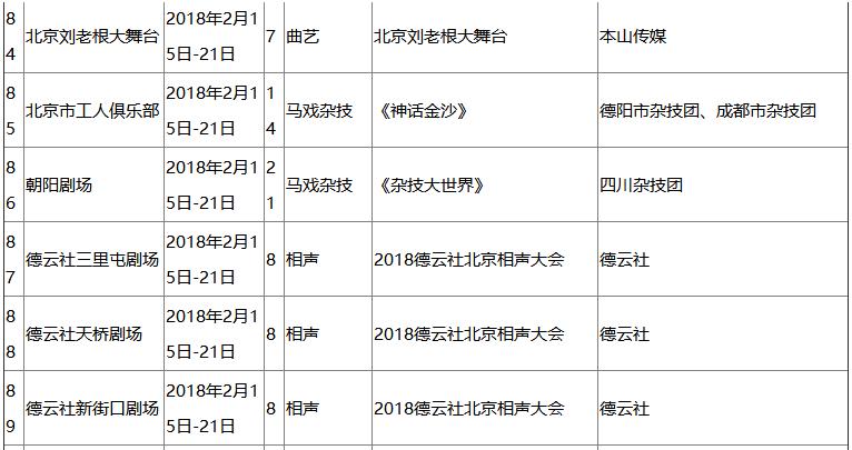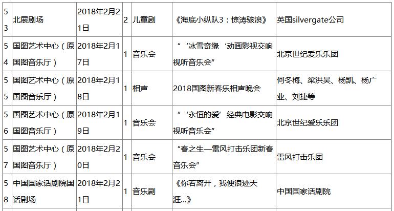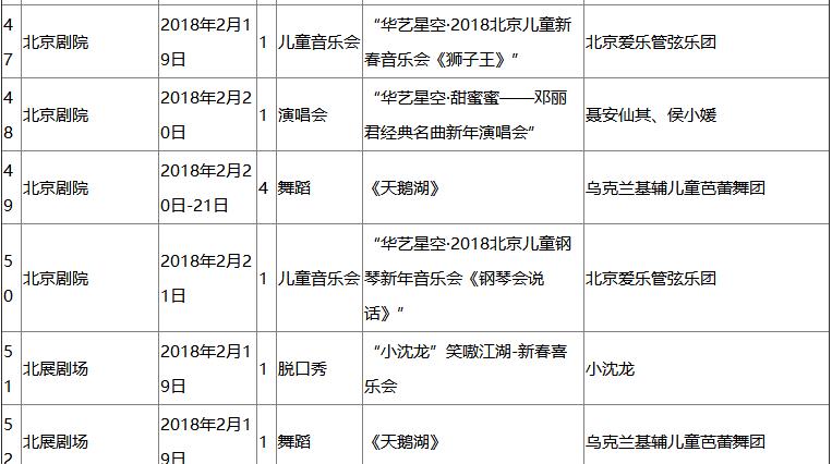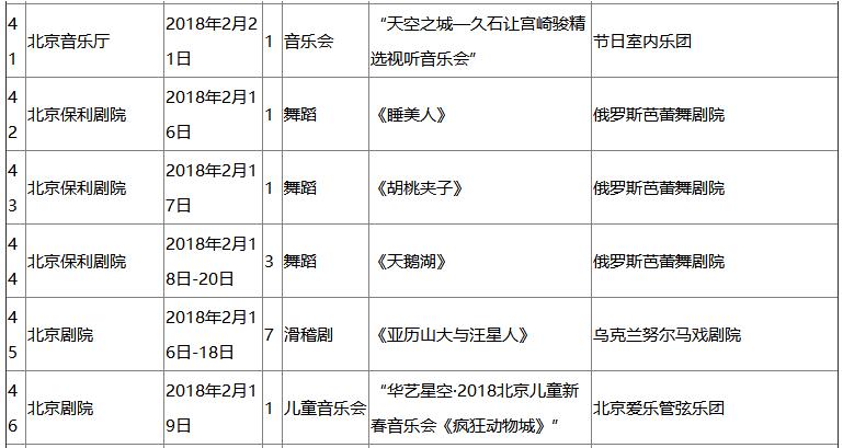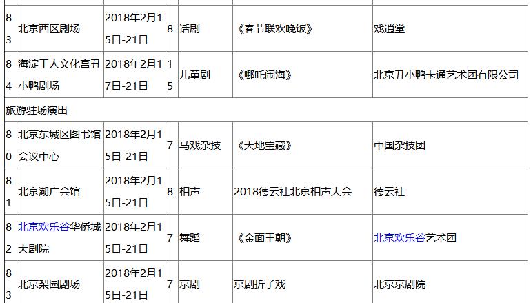 海淀剧院改变了以往表演马华滑稽作品的常规,推出了中国著名新年演员的“你说我笑”和“百日狗”特别表演,汇集了李金斗、李建华、李增瑞等著名相声演员。德运会和嘻哈行李商店等相声团体将带来60多场表演,带领观众度过一个快乐的新年。朝阳公园将推出“2018年新年版朝阳公园马戏团”,将聚集儿童喜爱的动物明星,如雄伟的狮虎、可爱的黑熊、聪明顽皮的孙悟空和可爱有趣的小狗。他们每一个人都有独特的技能,转而展示他独特的技能,从而为观众打开了整整一年的好心情。
