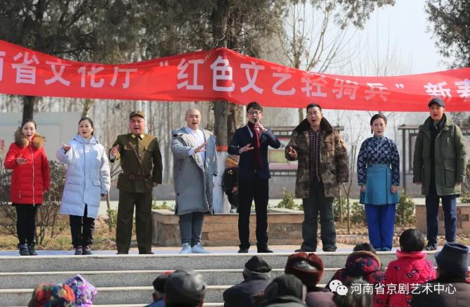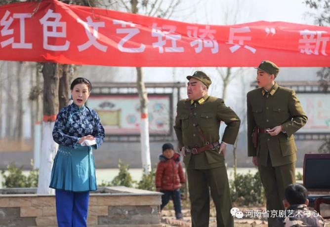 2月5日下午,2018河南新年京剧晚会圆满结束的第二天,河南京剧艺术中心近40名老、中、年轻艺术家及其晚会,在导演赵丽和副导演张帅的带领下,组成了一支“红色艺术轻骑兵”表演队。他们早上8点从郑州出发,驱车三个多小时到达淮阳县大连镇大竹村。尽管交通负担沉重,气温又低又冷,他们还是给当地人民带来了一场经典现代京剧《取虎山》和《大红灯笼高高挂》的特别演出,赢得了当地干部的喜爱。