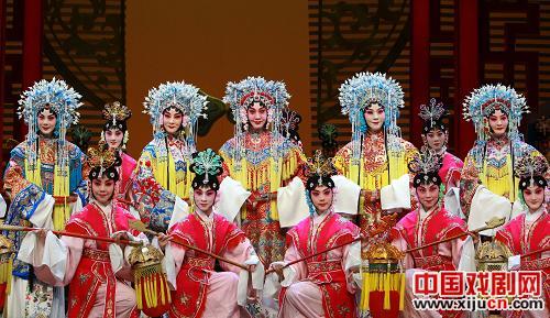 在欢快的序曲《春天充满男人》中,晚会开始了。整个晚上梨园里都是著名的京剧明星和新人才,展现了京剧这一民族艺术瑰宝继承和发展的丰硕成果。谭正岩、倪茂才、王燕等京剧演员表演了精彩的《朱连斋》、《桃花源记》和《穆桂英统领》节选,向观众展示了不同类型京剧的无穷魅力。陈少云、李海燕、唐和祥、陈淑芳等传统戏剧《追韩信》、《英台反婚》、《桃花源》、《龙凤盛世》各有特色,展现了京剧各领域人才的繁盛景象。李胜素等人用高亢的嗓音和高超的武艺表演了《门阳女将军》,赵宝秀等人用真情实感和深刻的委婉语表演了《四郎探母》,展示了著名京剧艺术家的精湛技艺。余奎之、孟广禄、李宏图表演的新史诗京剧《赤壁》、刘长瑜表演的现代京剧《大红灯笼高高挂》、上常戎、关东田表演的新历史京剧《贞观大事》,展示了古代京剧艺术在创新中的活力。晚会上,洪亮的鼓声扣人心弦,优美的歌声令人感动,精彩的表演令人陶醉。观众一个接一个地鼓掌欢呼。