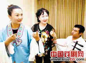 为了参加“中国戏剧学会第五届优秀青年京剧演员研究生班报告演出”,天津京剧剧院昨天首次上演了荀子的名剧《于今怒》,著名京剧表演艺术家孙毓敏(中)来到天津指导。(庞健)