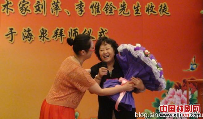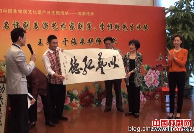 2013年6月8日,恰逢“非物质文化遗产日”,中国评剧剧院为著名评剧表演艺术家“白派”非世袭继承人刘萍先生和“魏派”、“马派”非世袭继承人李卫全先生举行了仪式。王平和于海泉,两位年轻演员,有幸成为两位著名艺术家的弟子,学习艺术和道德。这个仪式意义重大,因为它是中国评剧剧院在6月组织的一系列“流派传承”活动的一部分。出席接待弟子和拜师仪式的是业内著名专家和相关名人:中国评剧剧院院长王亚勋;副总裁刘胜利、齐建波、蔡昌旭;党支部副书记侯红;鞠萍著名表演艺术家、新派接班人顾文悦;中国平剧剧院前导演;中国评剧剧院前副院长张红文;著名剧作家郭启红;著名剧作家刘明庚;著名作曲家刘文田和著名书法家米南洋;平剧剧院的著名演员包括傅嘉祥、李金铭、孙璐扬、刘慧欣、高闯等。