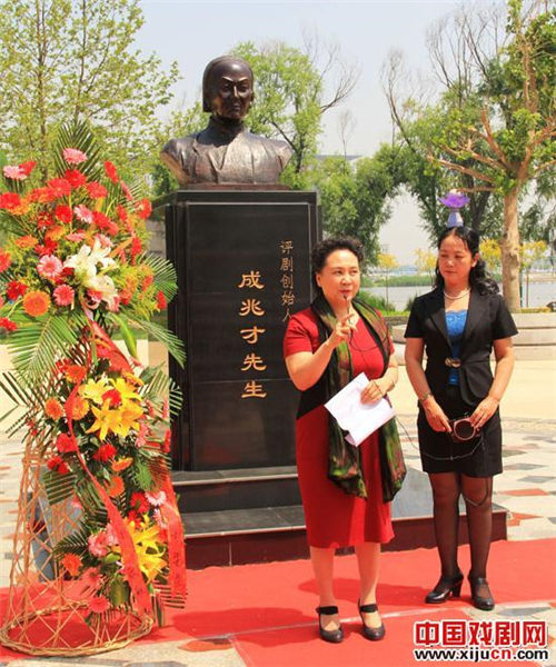 6月16日上午,全国政协委员、第二届中国戏剧梅花奖获得者刘秀荣带领北京刘秀荣评剧团来到河北滦南县。在认真参观了蔡照纪念馆后,刘秀荣一行在北河公园的程蔡照雕像前拜访了平举创始人程蔡照。